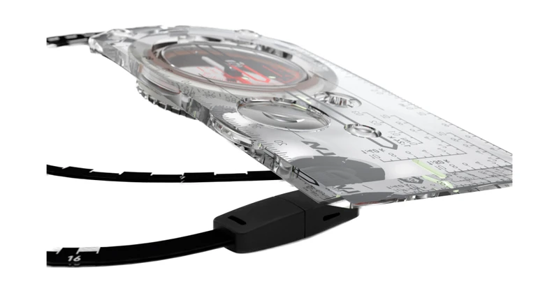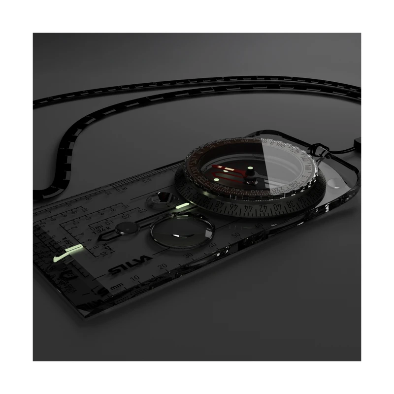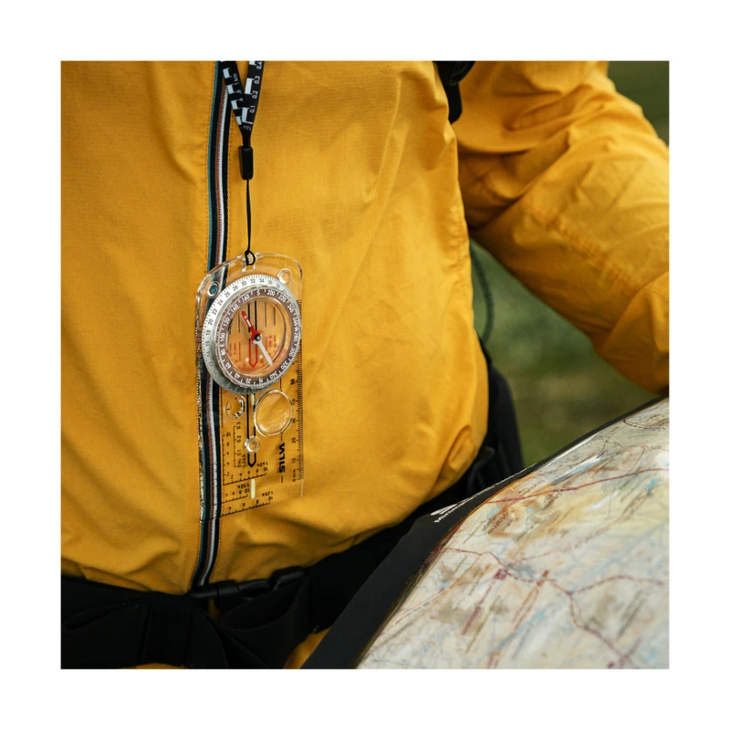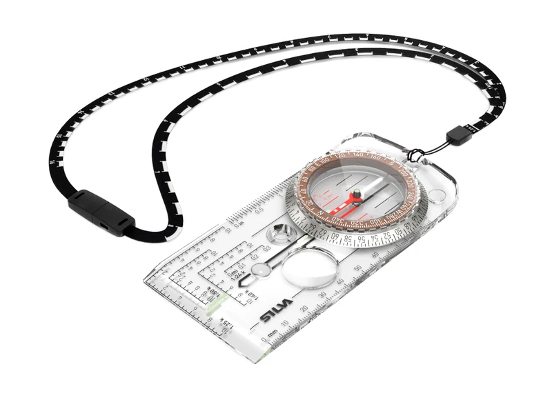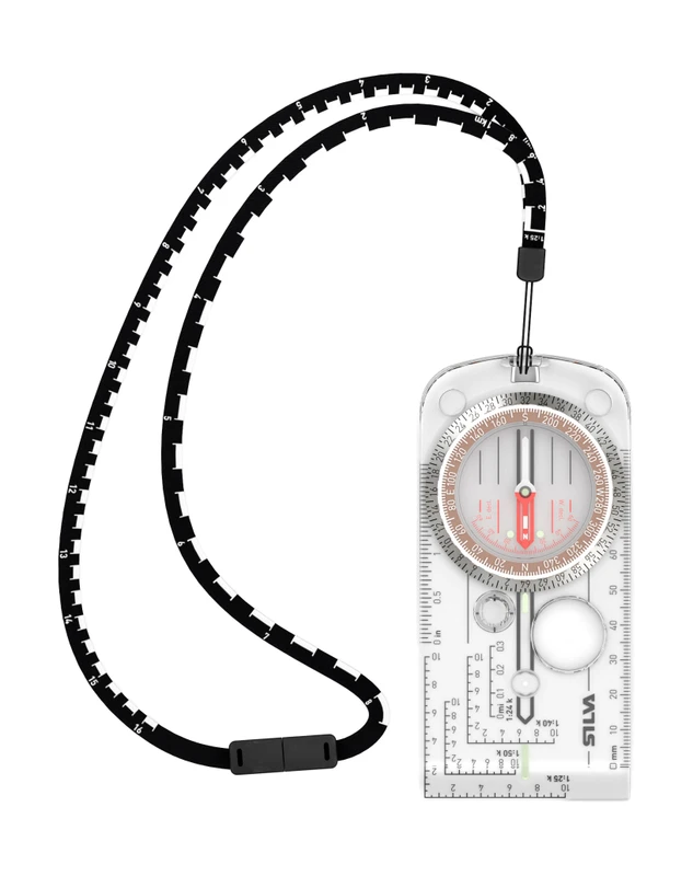 V spodnej časti tejto buzoly je otvor pre pripevnenie priloženej šnúrky na krk. Tá má na sebe dlhú potlač až 4 mierok pre rýchle čítanie veľkých máp. Pre metrickú mierku je to 1:25000 a 1:50000 a pre imperiálnu mierku 1:24000 a 1:62500. Šnúrku nemusíte cez hlavu prevliekať, má praktické zapínanie, čo príde vhod ak ste naobliekaní alebo máte na hlave masívnu čelovku.