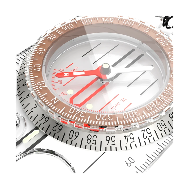 Vo vnútri kompasu je mierka deklinácie na zosúladenie aktuálneho magnetického severného pólu kompasu so zemským severným pólom mapy.