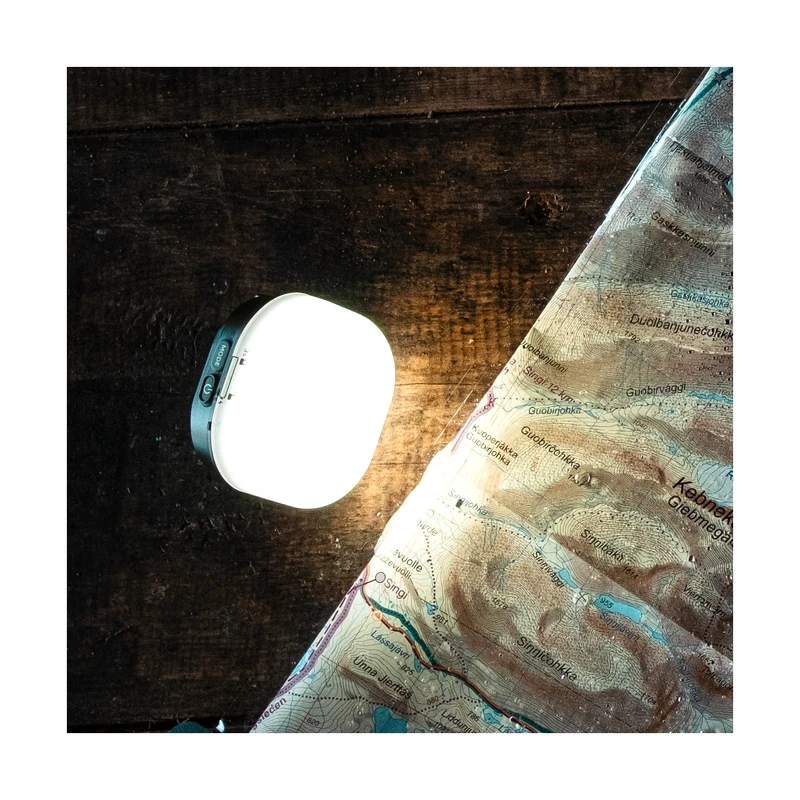 Táto kempingová lampa umožňuje výber medzi dvoma teplotami osvetlenia pomocou tlačidla MODE. Neutrálnu bielu farbu môžete využiť vonku medzi ostatnými turistami napríklad počas jedenia, na teplú farbu môžete prepnúť pre jemnejšie osvetlenie napríklad v stane.