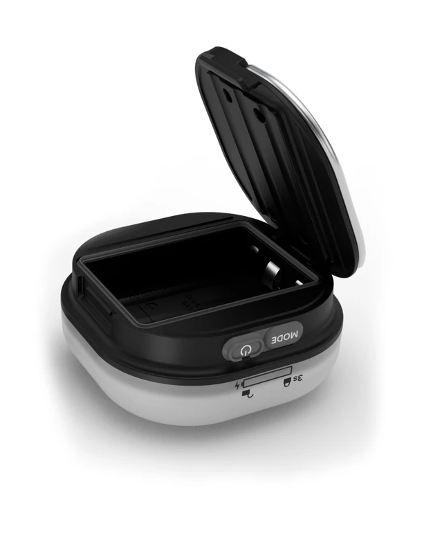 Kempingová lampa Silva Glow čierna vám poskytuje možnosť výberu z dvoch praktických možností napájania. Po otvorení dvierok získate prístup pre vloženie 3 kusov AAA batérií (nie sú súčasťou balenia). Do rovnakého priestoru môžete vložiť nabíjateľný akumulátor Silva Hybrid Battery (predáva sa samostatne). Vďaka tomu si môžete vybrať napájanie pomocou ľahko dostupných batérií alebo pohodlie vďaka vopred nabitému akumulátoru. Pri vypínaní sa na chvíľu zobrazí predpokladaná zostávajúca kapacita batérií alebo akumulátora Silva Hybrid Battery na 4-bodovej stupnici a podsvietenie tlačidiel ostane pár sekúnd svietiť, aby ste mali jemné osvetlenie počas odkladania kempingovej lampy napr. do batoha.