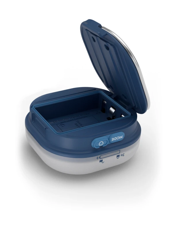 Kempingová lampa Silva Glow modrá vám poskytuje možnosť výberu z dvoch praktických možností napájania. Po otvorení dvierok získate prístup pre vloženie 3 kusov AAA batérií (nie sú súčasťou balenia). Do rovnakého priestoru môžete vložiť nabíjateľný akumulátor Silva Hybrid Battery (predáva sa samostatne). Vďaka tomu si môžete vybrať napájanie pomocou ľahko dostupných batérií alebo pohodlie vďaka vopred nabitému akumulátoru. Pri vypínaní sa na chvíľu zobrazí predpokladaná zostávajúca kapacita batérií alebo akumulátora Silva Hybrid Battery na 4-bodovej stupnici a podsvietenie tlačidiel ostane pár sekúnd svietiť, aby ste mali jemné osvetlenie počas odkladania kempingovej lampy napr. do batoha.