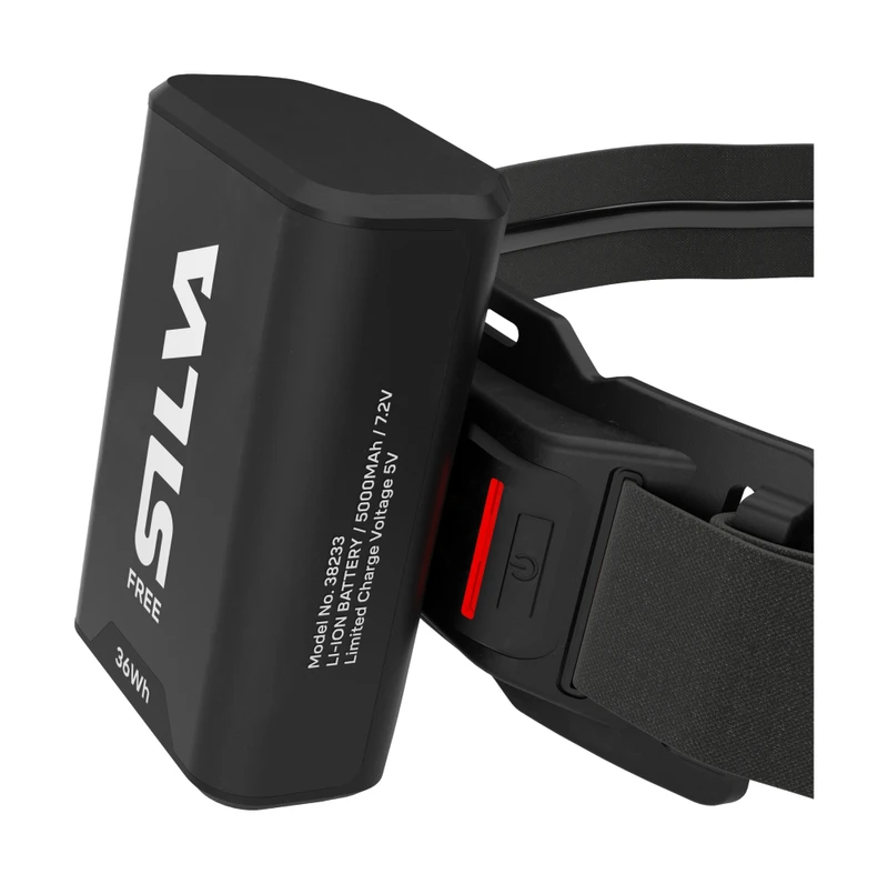 Čelovka Silva Free 2000 M je dodávaná s akumulátorom s kapacitou 5000 mAh (5,0 Ah, 36 Wh). Získate tak dostatok energie na dlhšiu nočnú cestu domov napríklad z jednodňovej turistiky alebo trailového bicyklového výletu. Akumulátor je stredne ťažký a tak vhodný pre nosenie vo vrecku bundy alebo ruksaku pomocou predlžovacieho kábla. Nabijete ho na plnú kapacitu už za 6 hodín, pričom USB-C vstup pre nabíjanie je v jeho spodnej časti a je samozrejme chránený pred vodou pomocou gumeného krytu spojeného s akumulátorom.