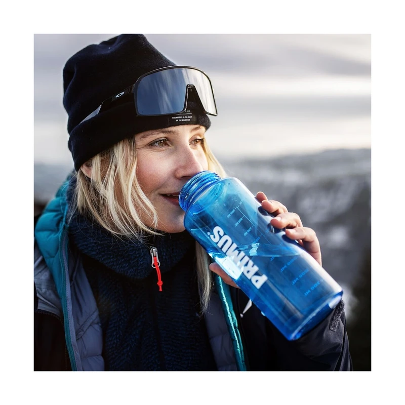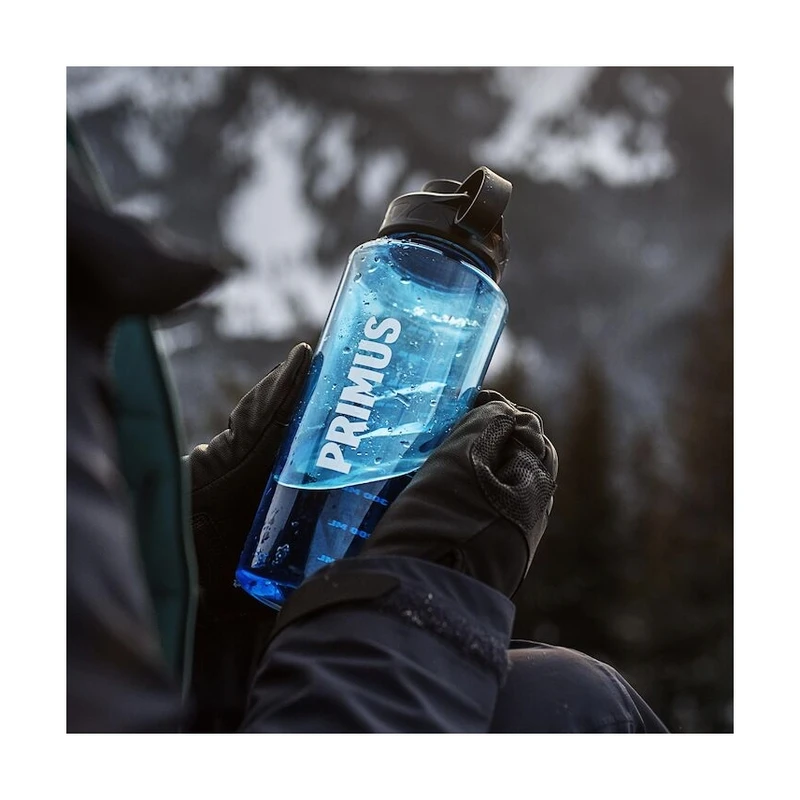 Športová fľaša na vodu Primus Trailbottle Tritan 1,0 l modrá je mierne priehľadná a tak môžete vidieť jej obsah. Na zadnej strane tejto športovej fľaše sa nachádza stupnica v rozmedzí 100 ml - 900 ml a tiež súbežná imperiálna stupnica v unciach od 5 oz - 30 oz. Vďaka stupnici môžete sledovať, aké množstvo vody ste počas športu vypili a koľko vám zostáva a tak lepšie manažovať príjem tekutín.