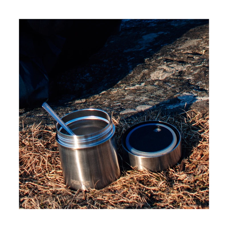 Termoska na jedlo od značky Primus s objemom až 700 ml a možnosťou celoročného používania. Jej povrch je prírodný - v sivej nerezovej farbe. Obsahuje jeden veľký otvor pre naplnenie jedlom.
